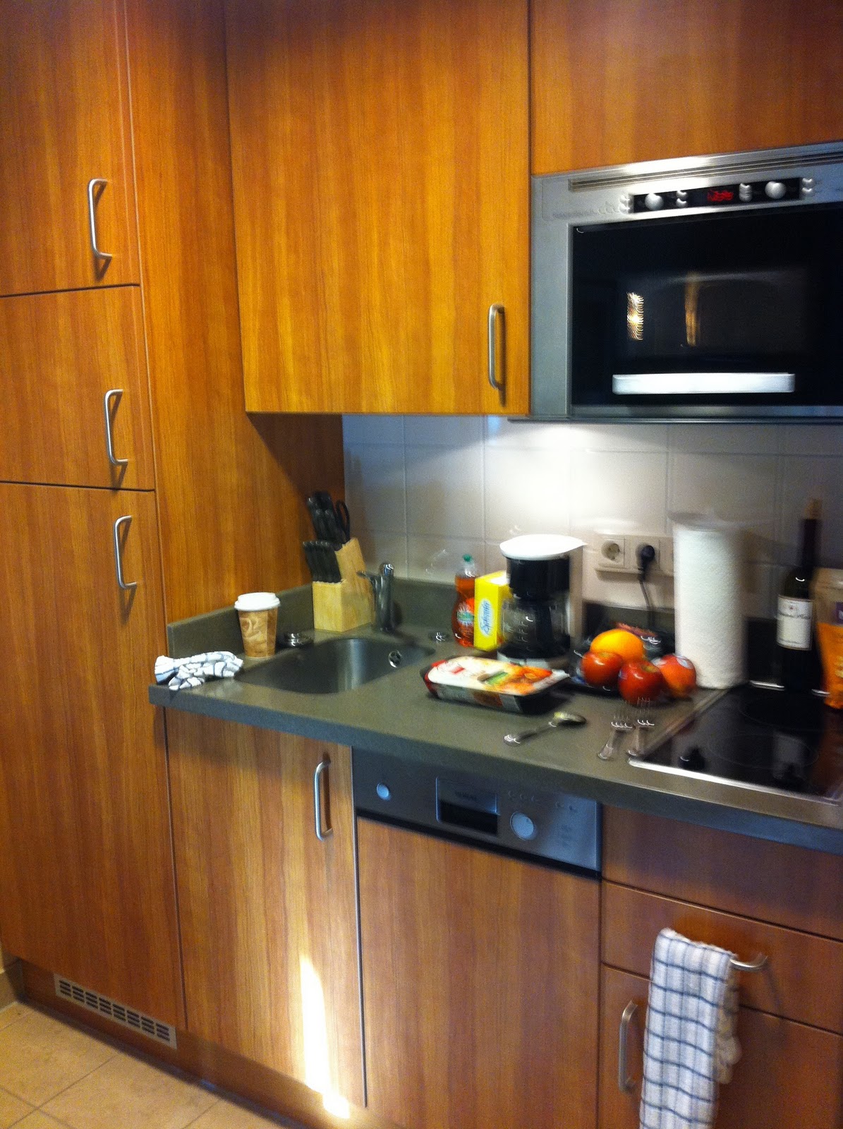 Our tiny little kitchen in our temporary apartment. Really, not bad!